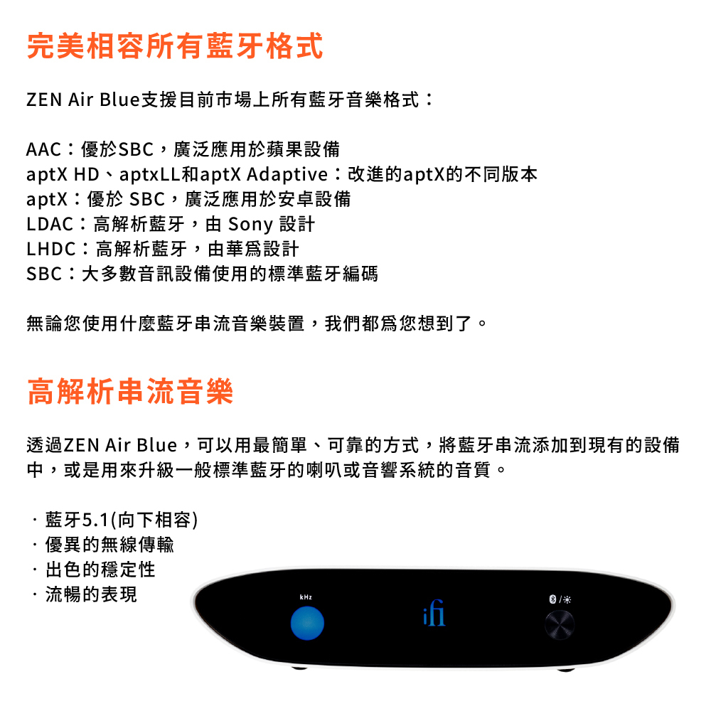 ● iFi將Zen Air Blue中內建的藍牙系統升級,相比起傳統一般的有線連接方式能降低40%的音質減損