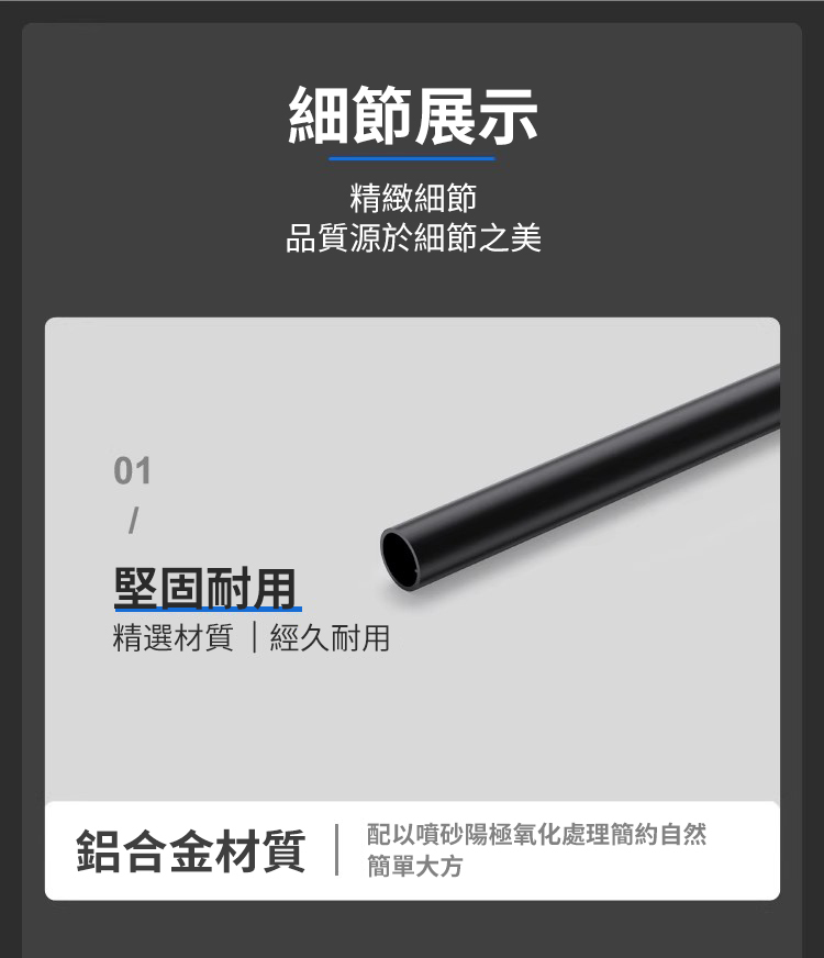 ● 【堅固耐用】鋁合金支柱,搭配噴砂工藝,耐用且不易變形