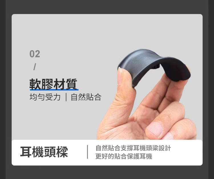 ● 【柔軟支撐】TPU軟膠頭枕,均勻受力,避免耳機頭帶壓痕
