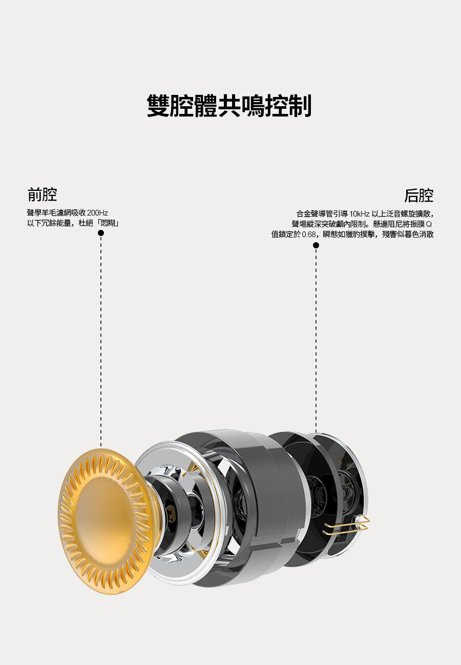 ● 雙腔體共鳴設計,低頻扎實不混,高頻細緻順滑,打造開闊自然的立體音場。