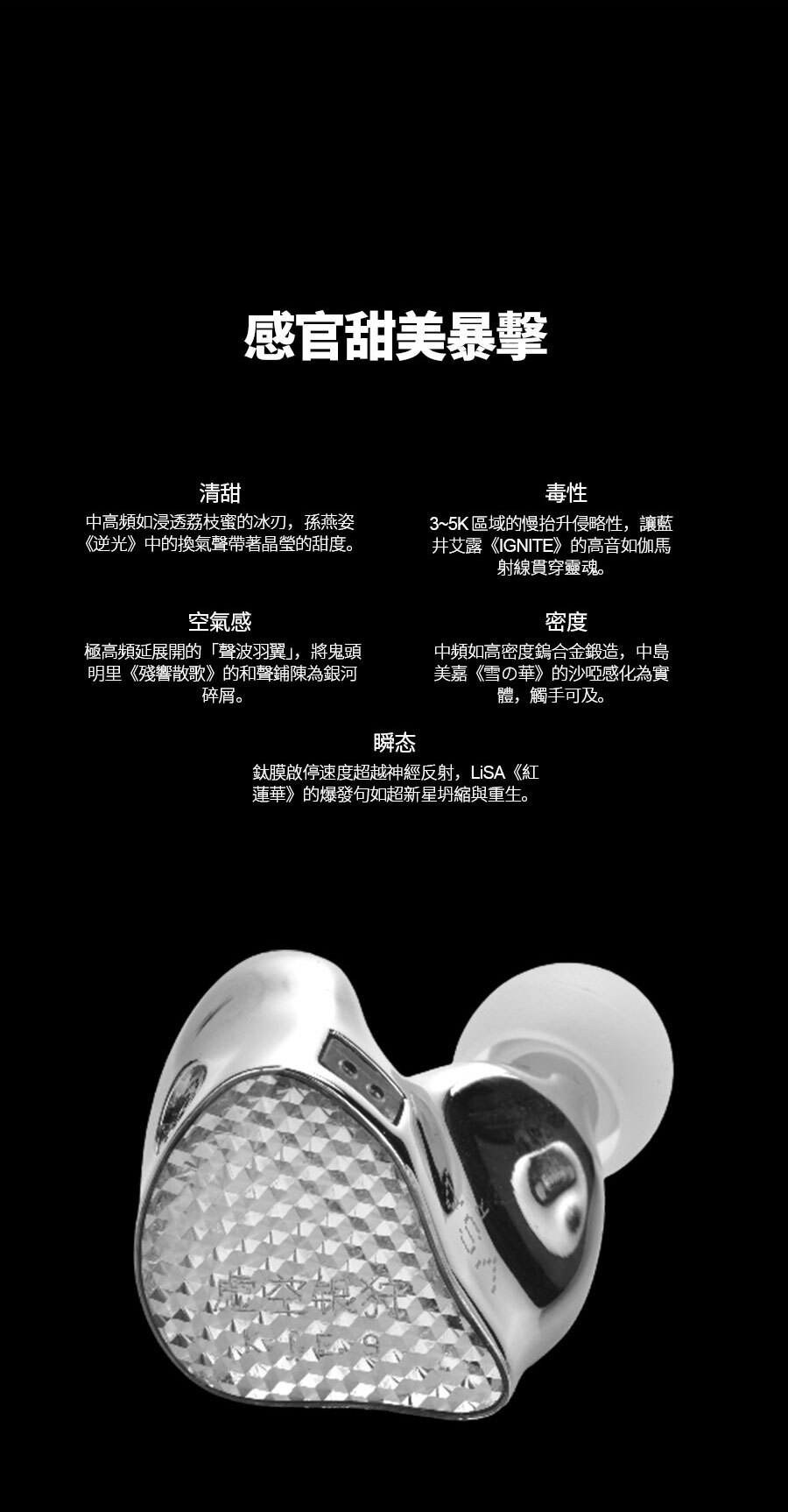 ● 適合曲風:女聲、J-POP、抒情、ACG、現場Live